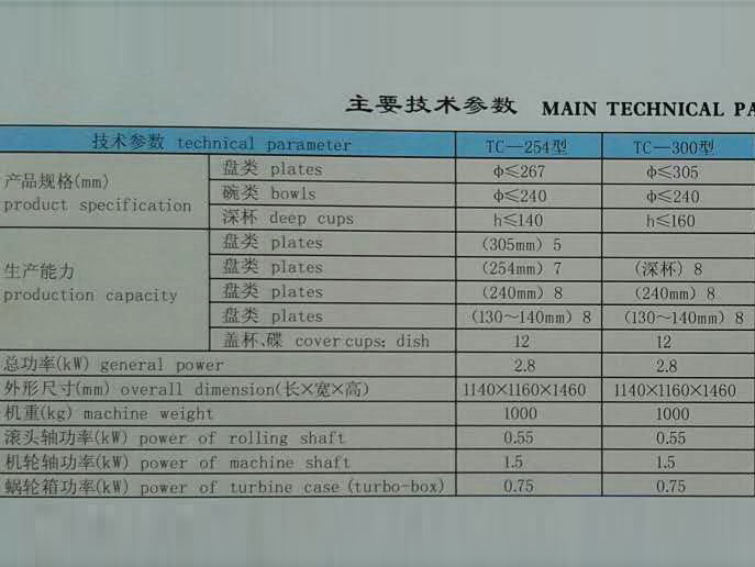 陶瓷機械設備主要參數一覽表產品導航